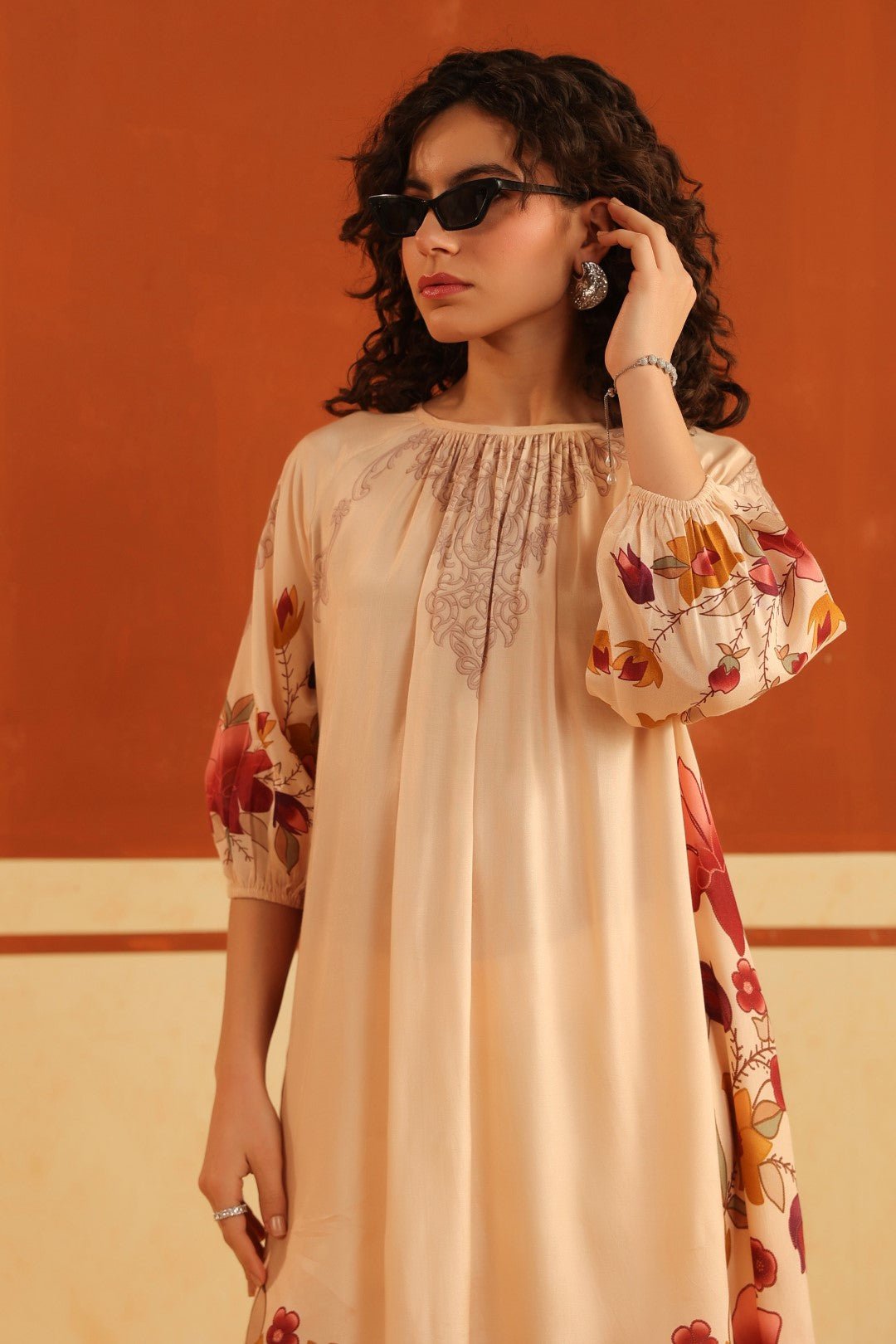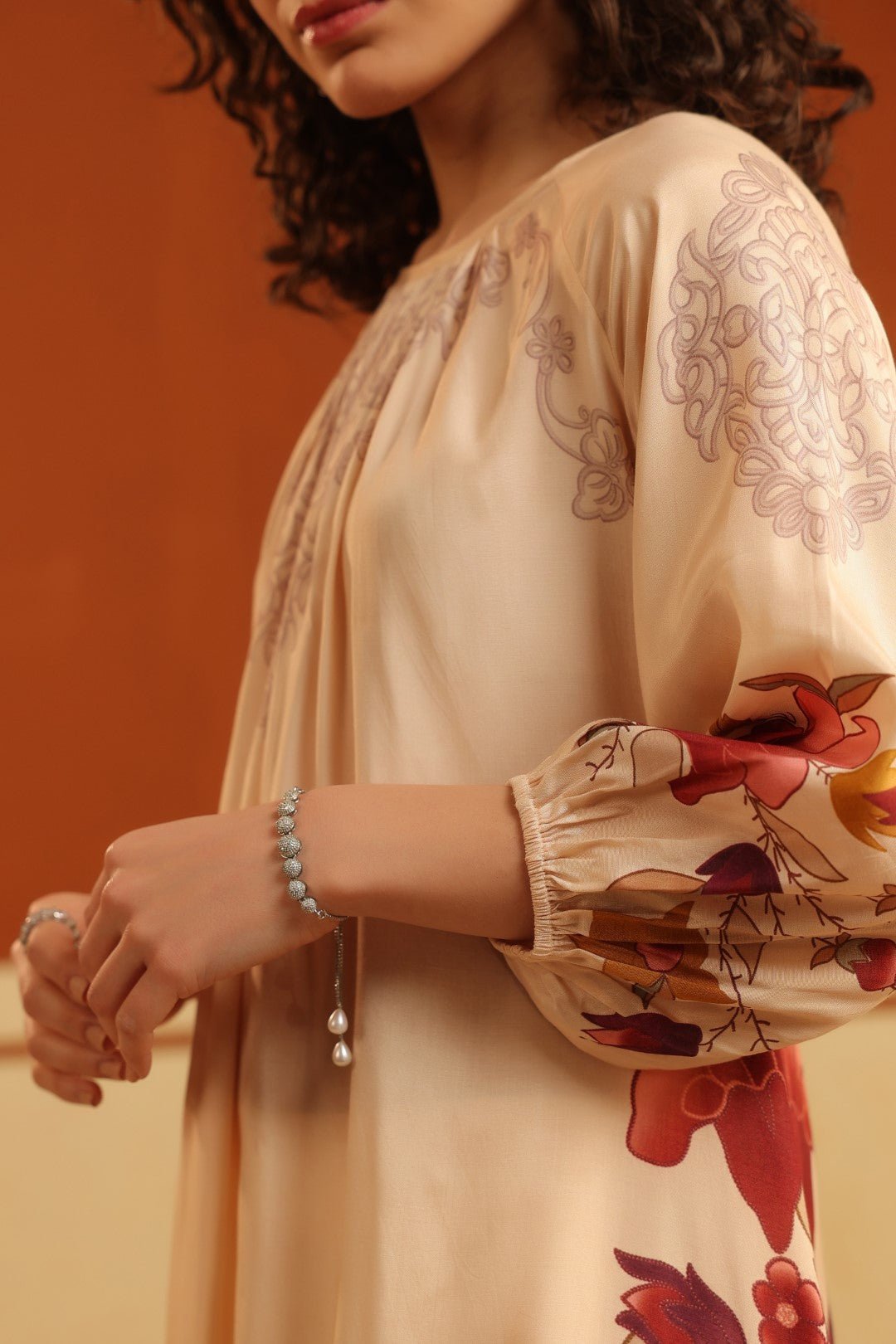 Peach Floral Printed Viscose Santoon Kurti & Pant Set for Women