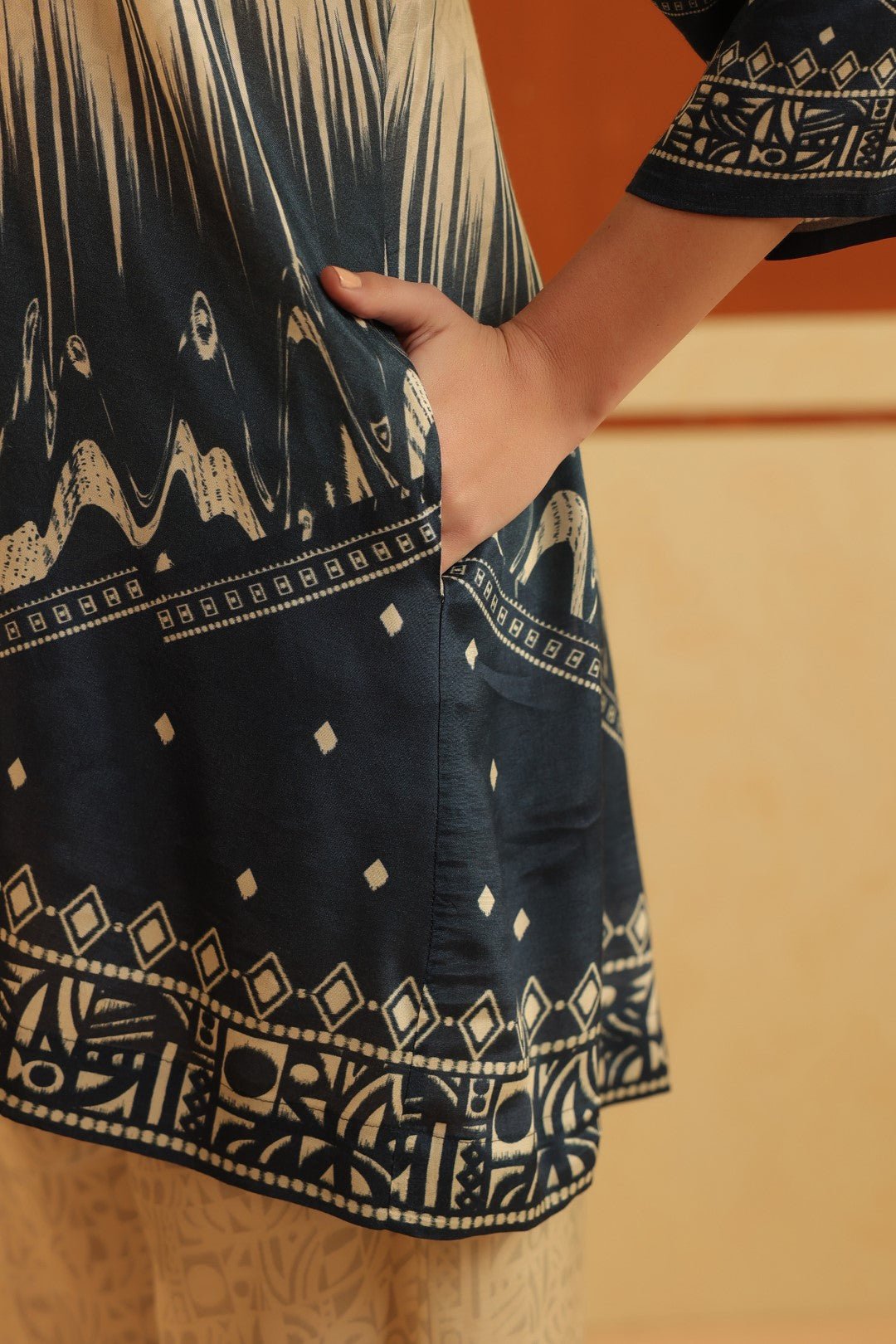 Nyaro Beige & Navy Printed Viscose Co-Ord Set for Women