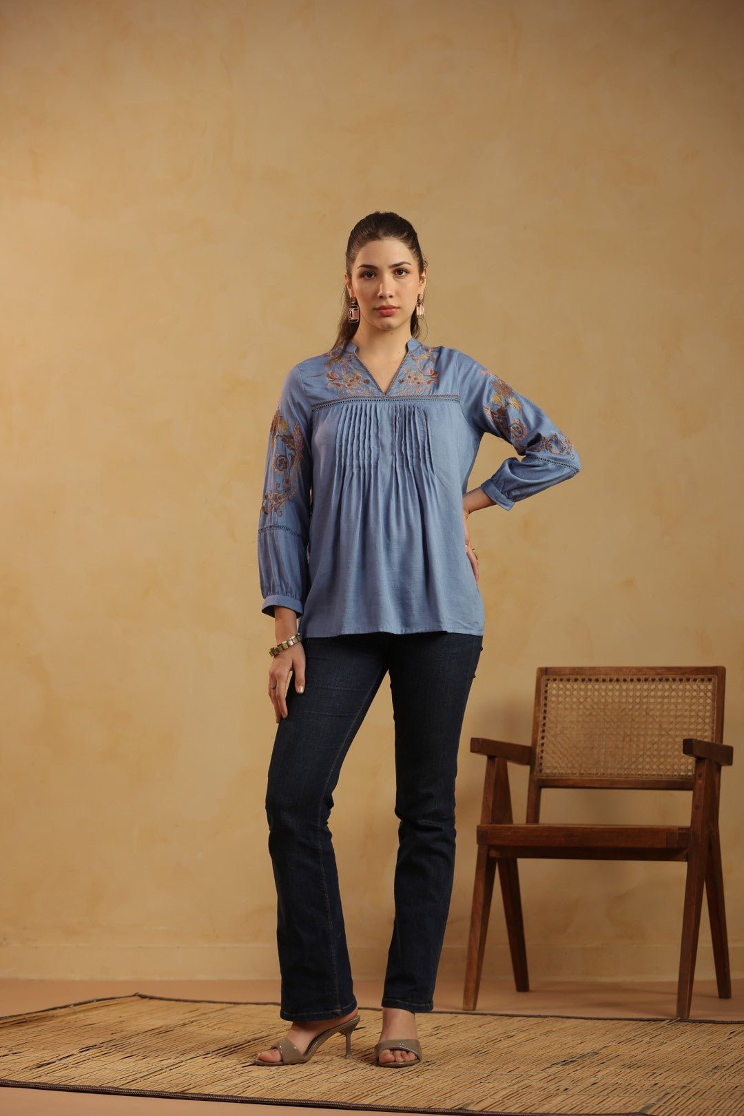 • Sleeves: Full sleeves with subtle embroidery detailing
