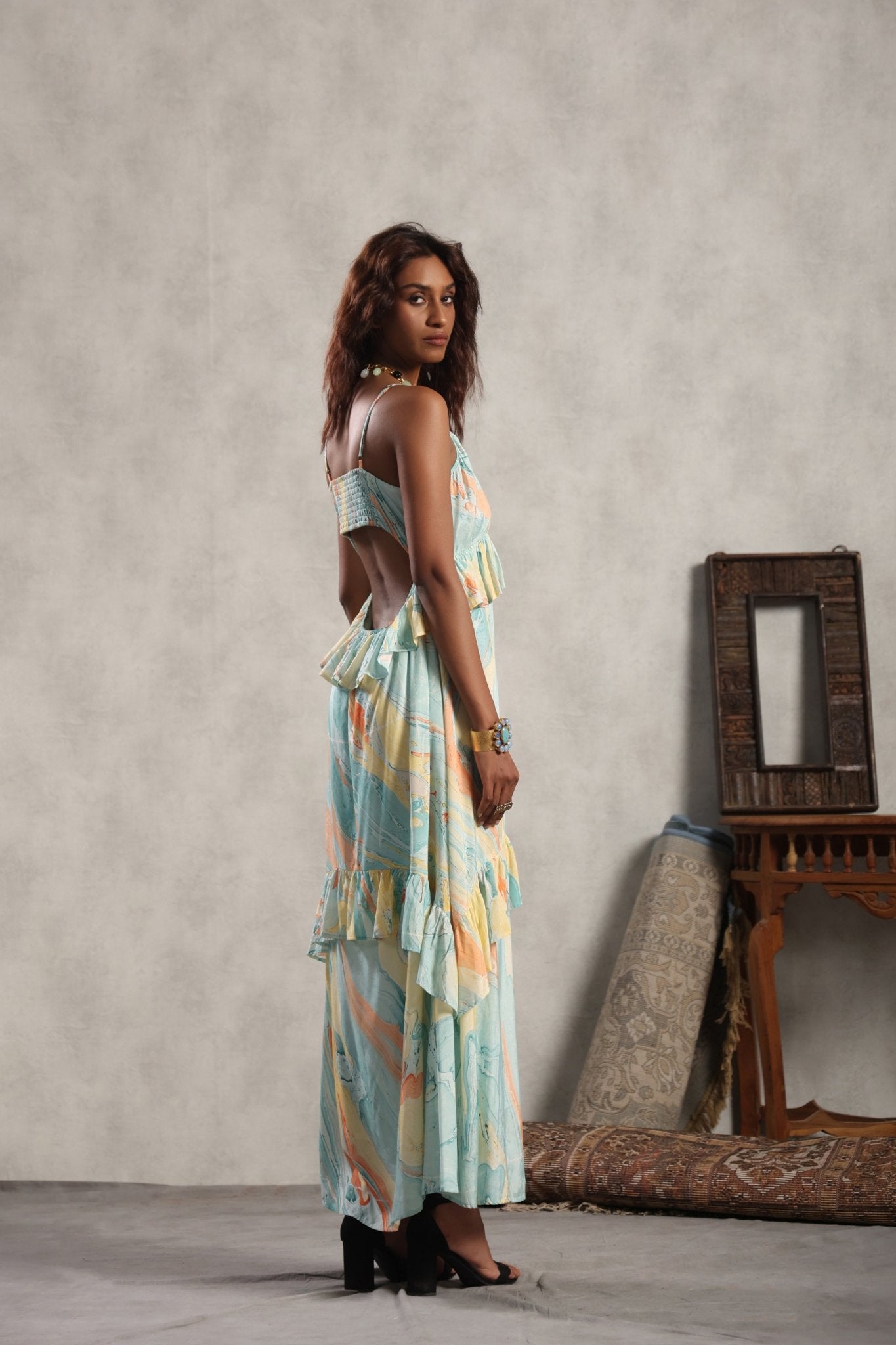 - Elevate your wardrobe with this Women’s Viscose Marble Print Frill Maxi Dress, designed for effortless elegance and comfort. Made from soft and breathable viscose fabric, this dress offers a lightweight and flowy fit, perfect for all-day wear. The artistic marble print adds a contemporary and chic touch, while the delicate frill detailing enhances its feminine charm. With its graceful maxi-length silhouette, this dress is ideal for brunches, vacations, evening outings, or special occasions. Pair it with heels or flats for a sophisticated and stylish look.